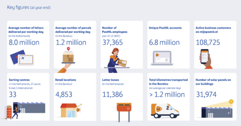 We bezorgen dagelijks pakketten en vijf dagen per week post. Op een doordeweekse dag bezorgen we in de Benelux gemiddeld 900.000 pakketten en 6,8 miljoen brieven. Voor onze klanten zijn wij de onmisbare schakel tussen verzenders en ontvangers en de verbinder tussen de fysieke en digitale wereld.